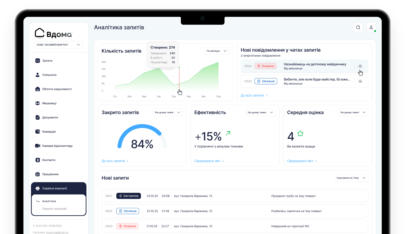Відстежуйте ефективність співробітниківна основі заявок, оцінок мешканців та часу реагування.Вся аналітика виконання робіттепер доступна на одному екрані