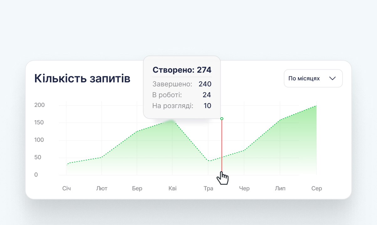 Графік кількості звернень за різні періоди. Дозволяє відстежувати тенденції, визначати пікові навантаження та планувати ресурси наперед